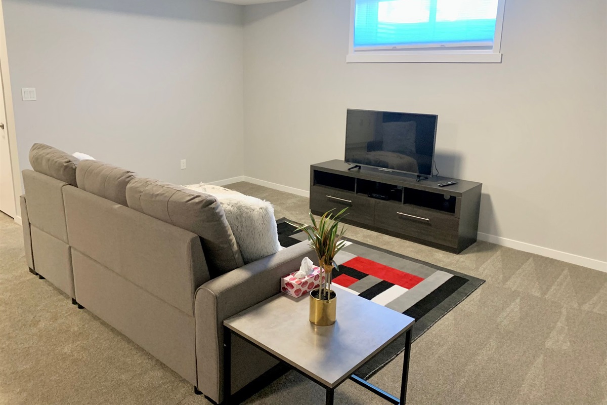 2 Bedrooms • 2 Bathrooms 2 Baths • Sleeps 2-4This modern bungalow includes 2 bedrooms in the basement usable by guests, so the guests need to be ok with a shared entrance, laundry and garage for when we are in town upstairs. One bedroom has a desk area if you need to work remote, and both bedrooms are very large and have keyed locks. The basement is over 1000SF with a kitchenette, dining table, living area and bathroom and guests can also use the main floor bathroom by the laundry.
